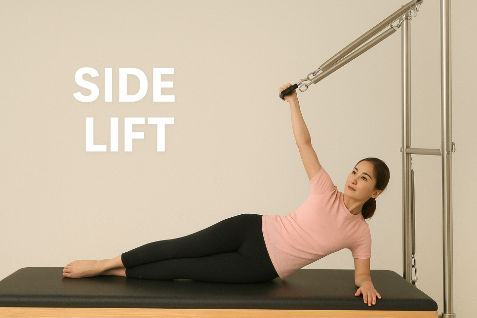 방법: 옆으로 누운 자세에서 다리를 스프링에 걸고 옆구리 근육을 사용해 다리를 들어 올립니다.